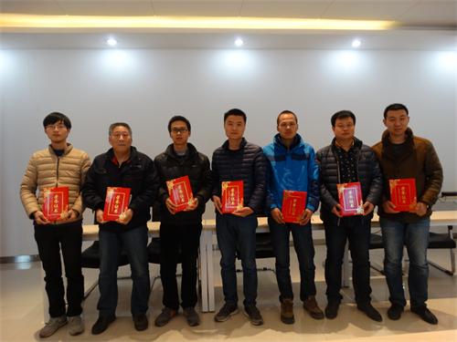 会上,总经理柯常军先生做了2015年工作总结,对大家过去一年的辛勤工作表示感谢,表彰了2015年在工作岗位上勤勤恳恳做出优异成绩的优秀员工,并宣读颁奖词,为优秀员工颁发证书及奖金。此次优秀员工通过员工投票及部门推选相结合的方式选出,共计7人。车间主任田兆鹏获得公司上下一致好评,当选“优秀管理者”;行政部司机权东京以近半数的选票被评为“最佳敬业奖”;质检部的段云飞,刻苦钻研、勤奋好学技术水平快速提高,被评为“最佳成长奖”;兢兢业业的供应部员工赵延年被评为“优秀员工”;综合绩效分数、出差天数、技能水平以及员工投票数,售后服务部王红涛被评为“服务之星”;2015年销售业绩冠军王鑫被评为“销售之星”;生产部骨干生产组长陈刚被评为“先进员工”。