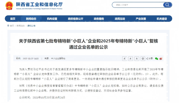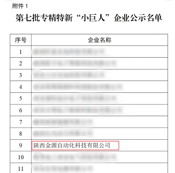 近日,金源自动化顺利通过国家工业和信息化部的最终评审,成功入选2025年专精特新“小巨人”企业名单,该结果已在陕西省工业和信息化厅公示。金源自动化凭借在电力行业细分领域的突出表现、技术优势和创新能力,荣获国家级专精特新“小巨人”企业称号。
